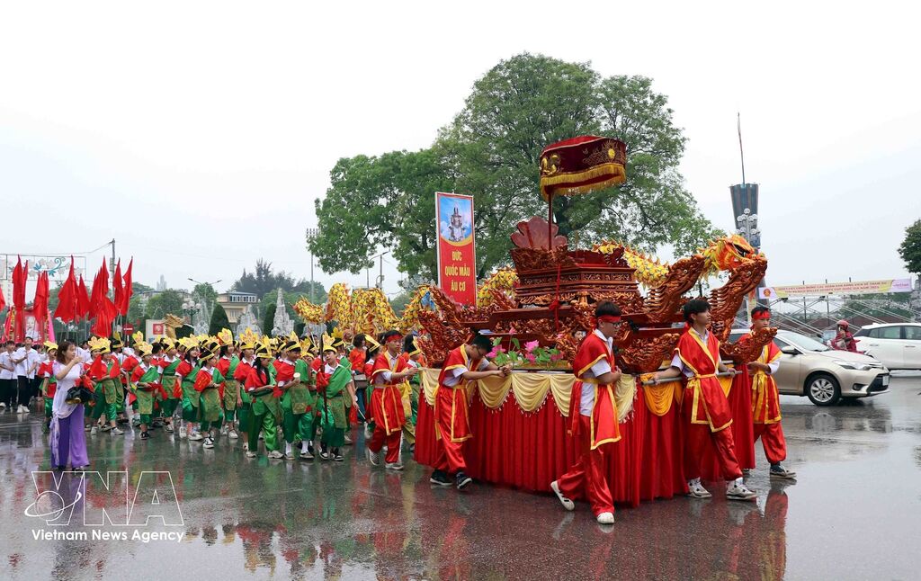 | Cortège cérémoniel, procession de palanquins et d'offrandes aux Temples des rois Hùng. Photo : VNA/CVN |