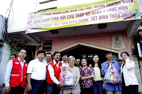 | Remise des cadeaux du Têt aux personnes démunies du 4e arrondissement de Hô-Chi-Minh-Ville. |