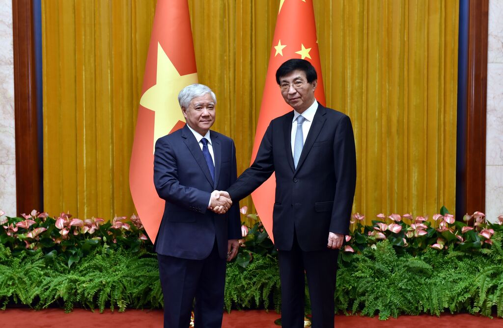 | Do Van Chiên (gauche), président du Comité central du Front de la Patrie du Vietnam, et Wang Huning, président de la Conférence consultative politique du peuple chinois (CCPPC), lors de la visite de Dô Van Chiên en Chine en juillet 2023. |