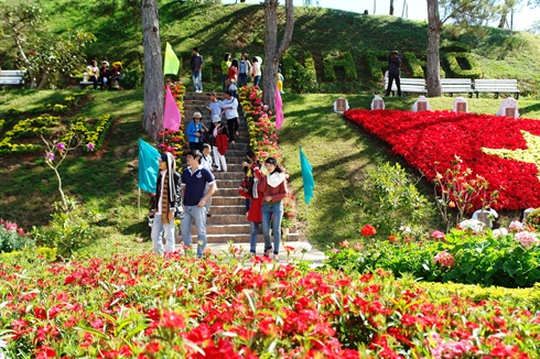 | Des touristes dans un parc floral de la ville de Dà Lat, province de Lâm Dông (hauts plateaux du Centre). |