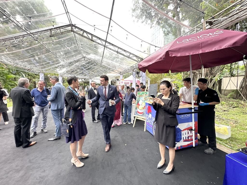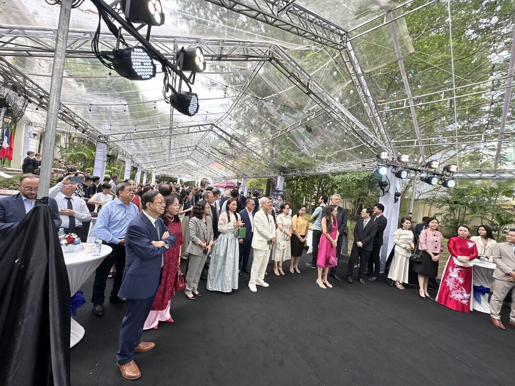 | Des participants, conviés et entrepreneurs à la Fête nationale française le 14 juillet à la Résidence française à Hô Chi Minh-Ville. |