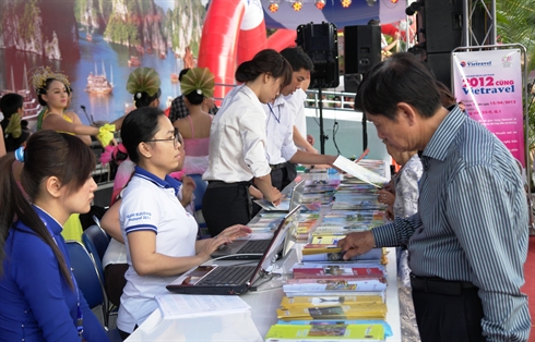 | Les clients cherchent les informations sur les tours, lors de la 8e Fête touristique de Hô Chi Minh-ville 2012. Photo : Nguyên Dat /CVN |