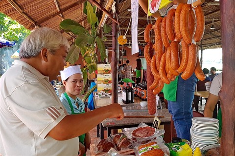 | Un visiteur au stand de la gastronomie dans le cadre de la Journée de l'écriture et de la culture slaves à Hô Chi Minh-Ville. |