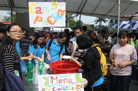 | Les étudiants lao et cambodgiens ont participé aux activités pour marquer leurs fêtes traditionnelles. |