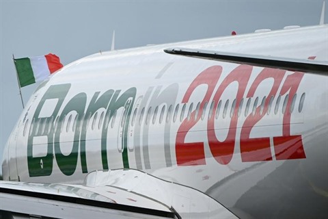 Un avion d'ITA Airwys porte l'inscription "Born in 2021", avant son décollage de l'aéroport Fiumicino à Rome, le 2 décembre 2021. Photo : AFP/VNA/CVN |
