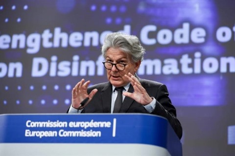| Le commissaire européen au Marché intérieur Thierry Breton, lors d'une conférence de presse à Bruxelles, le 16 juin. |