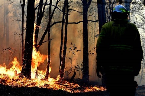 | Un pompier australien devant un feu de brousse à Port Macquarie, le 2 novembre. Photo : AFP/VNA/CVN |