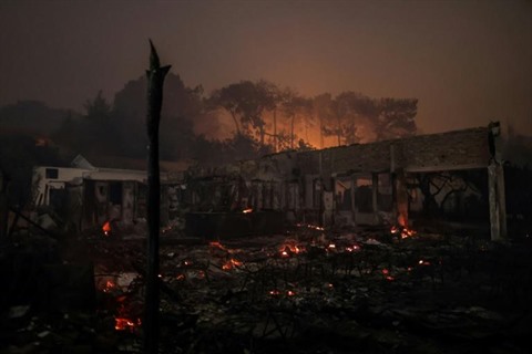 | Un restaurant détruit par les incendies près de La Teste-de-Buch (Gironde), le 15 juillet 2022. |