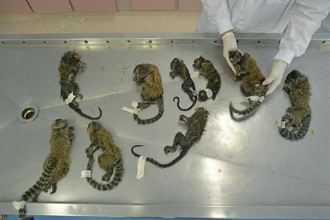 | Des cadavres de singe à l'Institut municipal de médecine vétérinaire de Rio au Brésil le 8 février. |