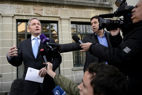 | Le secrétaire général du TAS, Matthieu Reeb, annonce la sentence visant Michel Platini, le 11 décembre à Lausanne. |