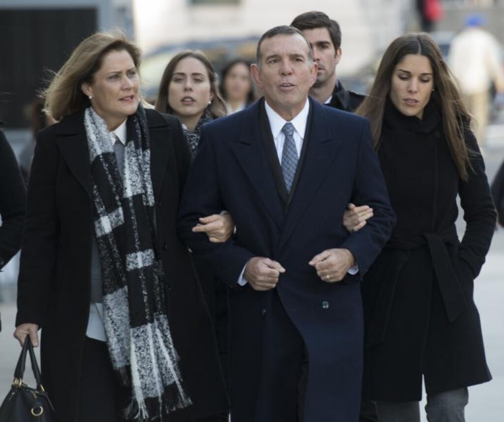 | Le Paraguayen Juan Ángel Napout entouré par sa famille à son arrivée au tribunal de Brooklyn, le 15 novembre 2017. |
