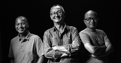 | Trois artistes de renom (de gauche à droite) : le peintre Nguyên Quang Vinh, le sculpteur Bùi Hai Son et le peintre |