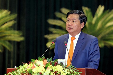 | Le secrétaire du Comité du Parti pour Hô Chi Minh-Ville, Dinh La Thăng, lors de la clôture de la conférence des Viêt kiêu du monde entier de 2016. |
