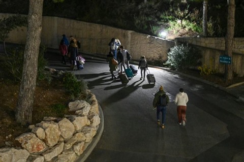 | Des personnes évacuées de Wuhan, en Chine, et placés en quarantaine pendant 14 jours, quittent le centre de vacances de Carry-le-Rouet, le 14 février 2020 près de Marseille. |