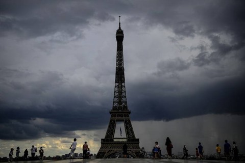 | L'esplanade du Trocadéro et la Tour Eiffel, le 9 mai à Paris. |