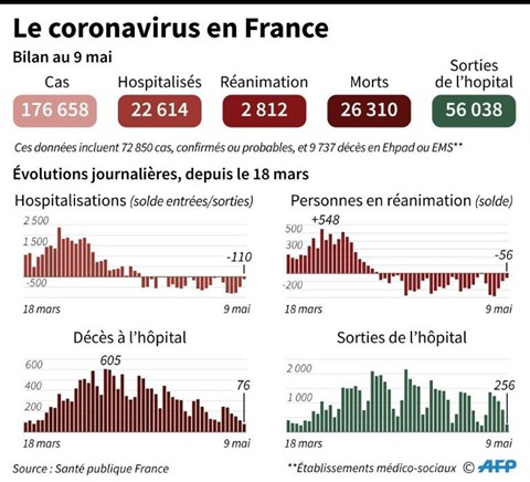 Le confinement drastique et inédit d'une bonne partie de la population a porté ses fruits, avec un bilan quotidien des décès retombé dimanche soir 10 mai à 70 morts, son plus bas niveau depuis la mise sous cloche du pays le 17 mars. Le bilan total s'élève toutefois à au moins 26.380 décès, alors que la pression sur les services d'urgence hospitaliers se réduit toujours.