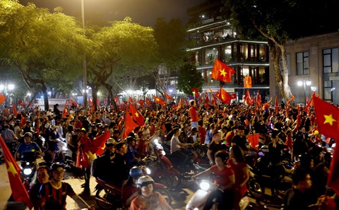 | Une foule en liesse à Hanoï, après la victoire du Vietnam en demi-finale de l’AFF Suzuki Cup. |
