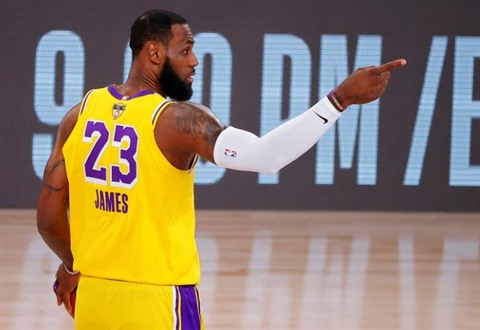 | Lebron James au cours du match 4 des finales NBA contre le Miami Heat, le 6 octobre à Orlando. |