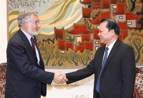 | Rencontre entre le vice-Premier ministre Vu Van Ninh (droite) et l'ancien vice-président de la FINMA, Daniel Zuberbuchler, le 4 décembre à Hanoi. |