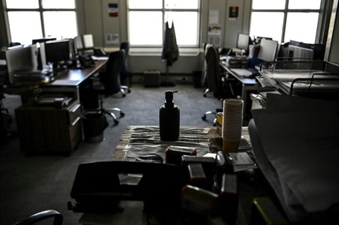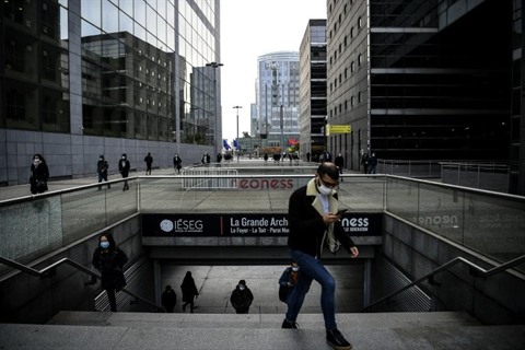 | Des bureaux de La Défense, quartier d'affaires près de Paris, lors d'un des pics de la pandémie de COVID-19 |