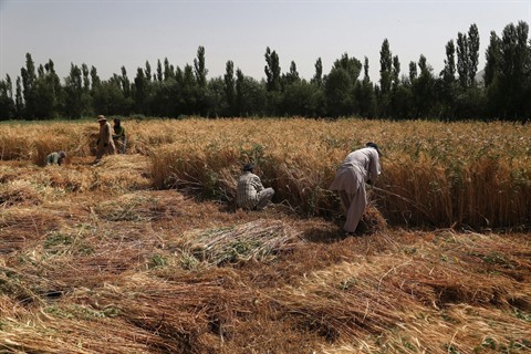 | Des fermiers afghans fauchent un champ de blé dans la province de Ghazni (Centre de l'Afghanistan), le 17 juillet. |