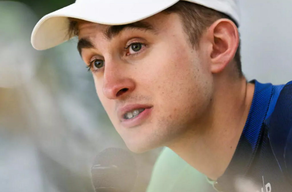 | Le prodige français Paul Seixas, 19 ans, après sa victoire dans la Flèche wallonne, le 22 avril à Huy (Belgique). |