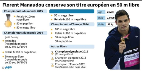 | Florent Manaudou conserve son titre européen en 50 m libre |