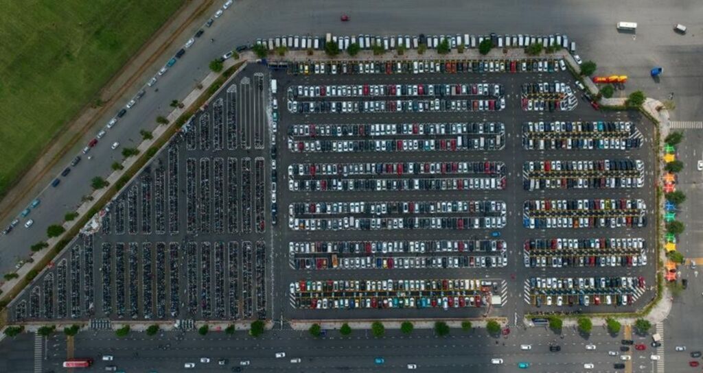 | Le parking de grande capacité équipé de stations de recharge pour véhicules électriques. |