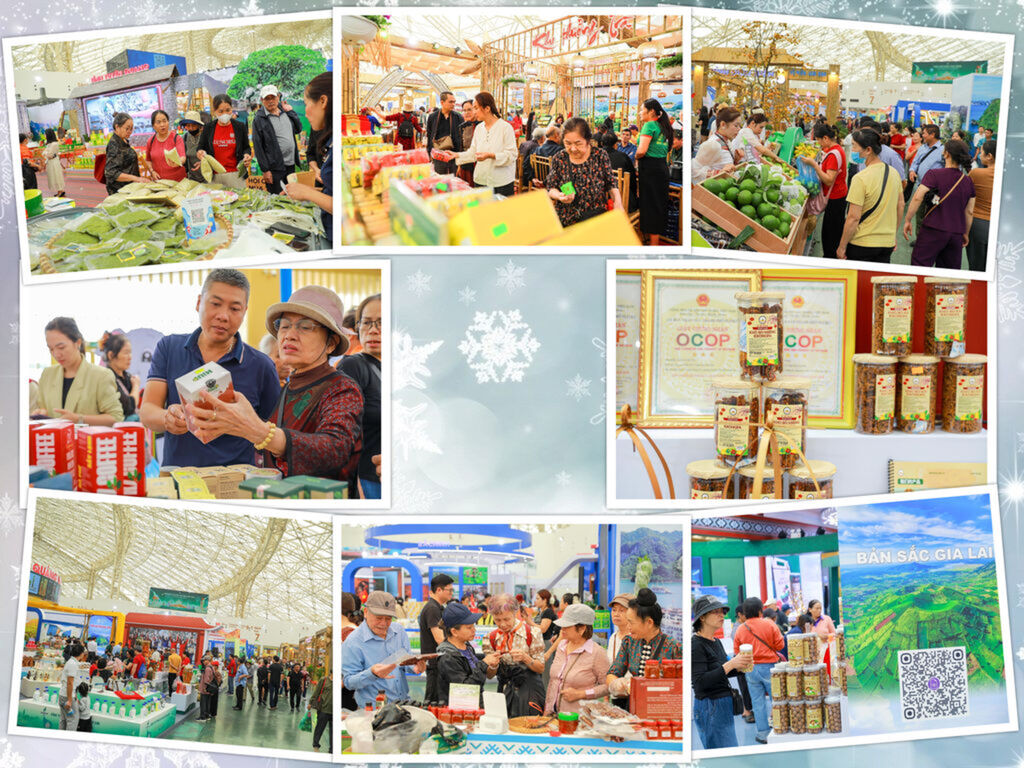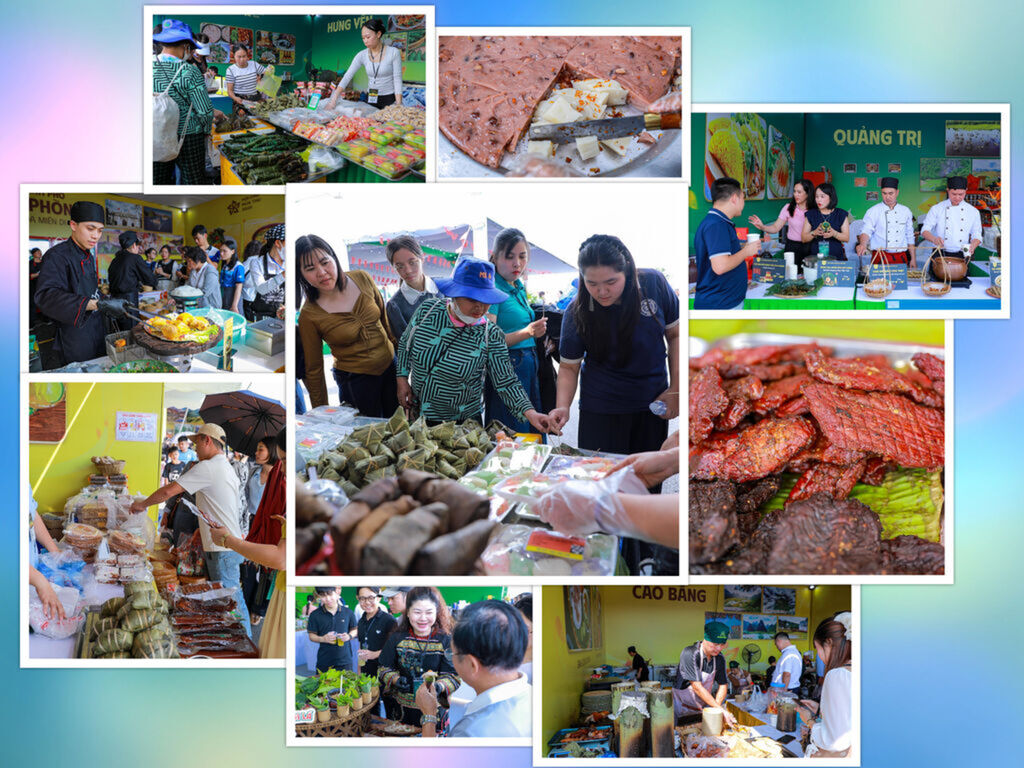 L'itinéraire "Vietnam en miniature" continue avec la zone "Thu Đất Việt" (Automne du Vietnam), où 33 provinces et villes présentent leurs produits les plus fins. Le stand de la province de Cao Bằng attire les regards avec sa "fleur" de vermicelles de légumes multicolores, tandis que Lạng Sơn met en avant des fruits de montagne comme des kakis, des avocats et des poires dorées. Điện Biên présente du chẩm chéo (une sauce épicée traditionnelle) et de la viande de bœuf séchée au feu… Une véritable explosion de saveurs des montagnes.