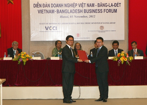Selon Vu Tiên Lôc, président de la Chambre de Commerce et d'Industrie du Vietnam (VCCI), le Vietnam et le Bangladesh disposent des bonnes relations d'amitié. Ces dernières années, la valeur des échanges commerciaux a augmenté de 100% avec 500 millions de dollars en 2011. Les deux parties s'efforcent de doubler ce montant dans les deux ou trois années prochaines.