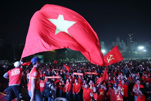 | Des supporters fêtent la victoire de l'équipe de football vietnamienne aux SEA Games 30 aux Philippines. |