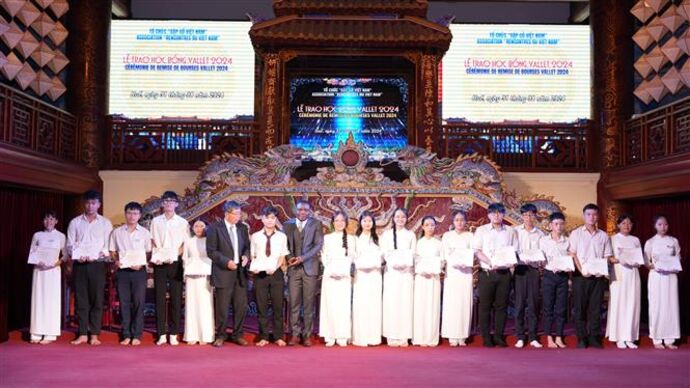 Prenant sa parole à la cérémonie de remise de bourses Vallet aux élèves et lycéens brillants venus de 55 écoles dans les provinces du Nord, tenue le même jour, la vice-ministre des Affaires étrangères et présidente du Comité d'État pour les Vietnamiens d'outre-mer, Lê Thi Thu Hang, a souligné : "Le ministère des Affaires étrangères et le Comité d'État pour les Vietnamiens à l’étranger sont fiers d’avoir collaboré étroitement avec le ministère des Sciences et des Technologies, ainsi qu’avec d’autres ministères, secteurs et autorités, pour accompagner et faciliter les actions de la Fondation Vallet ainsi que celles de l’Association Rencontres du Vietnam au fil des ans".