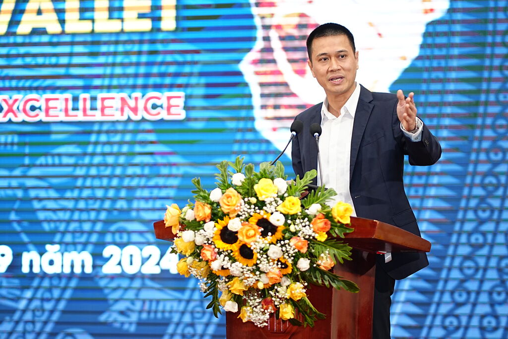 | Le directeur du Service des sciences et des technologies de la province de Binh Duong (Sud), Nguyên Viêt Long, un des anciens boursiers Vallet, à la cérémonie de célébration, samedi 21 septembre à Hanoï. |