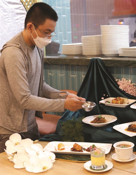 | Bùi Ly Tiên Nguyên décore ses plats avant de les photographier. |