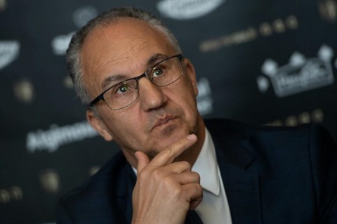 | Le président du SCO d'Angers, Saïd Chabane, lors d'une conférence de presse, le 26 mars au siège du club. |