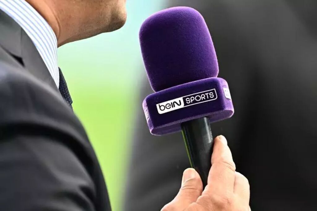| Un journaliste de beIN Sports à San Siro à Milan. |