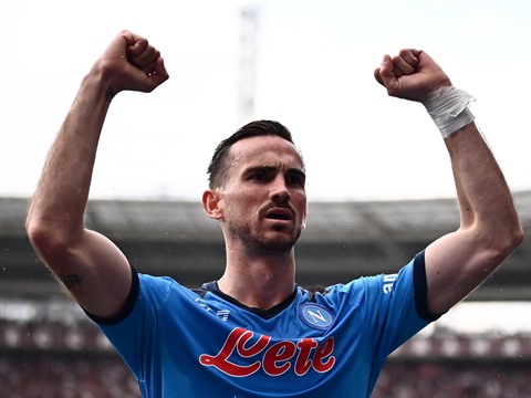 | Le milieu international espagnol du Paris SG, Fabian Ruiz, sous les couleurs de Naples lors d'un match contre le Torino en Serie A, le 7 mai 2022 à Turin. |