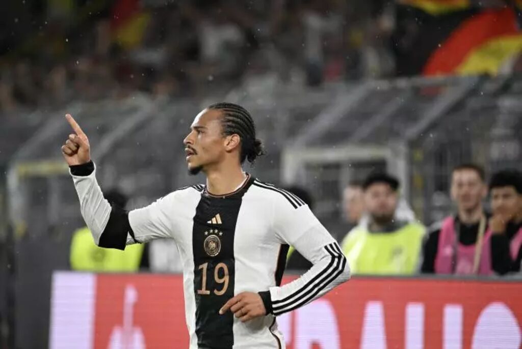 | Leroy Sane vient d'inscrire le but du 2-0 pour l'Allemagne contre la France en match amicazl le 12 septembre à Dortmund. |