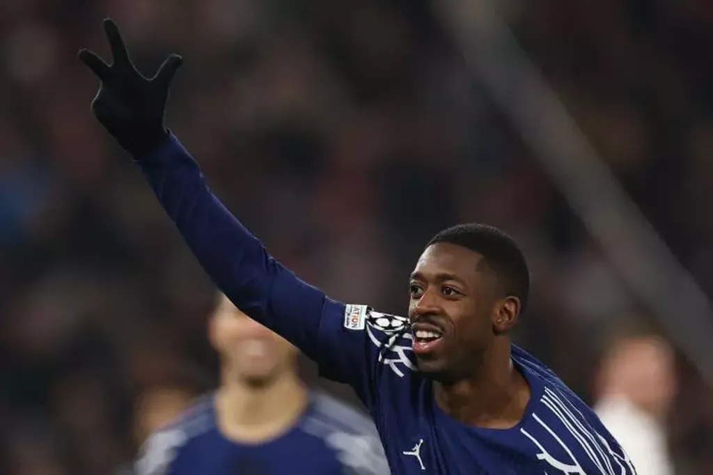 | Ousmane Dembélé vient de marquer pour le PSG contre le VfB Stuttgart en phase de ligue de C1 le 29 janvier à Stuttgart. |