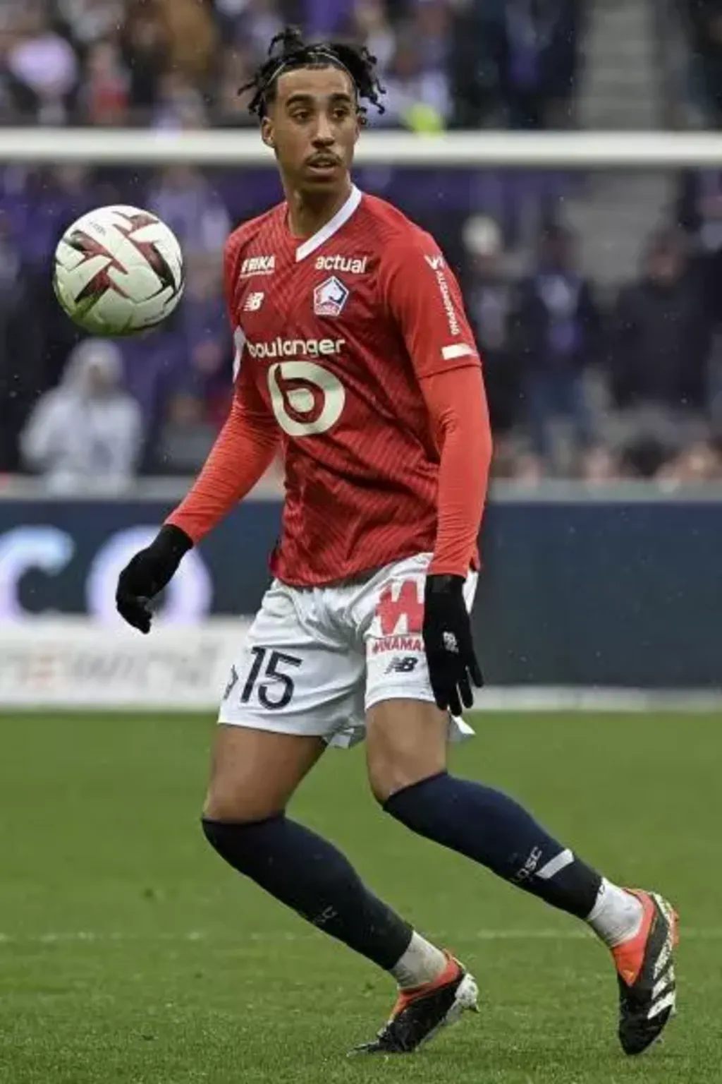| Leny Yoro avec Lille sur le terrain de Toulouse. |