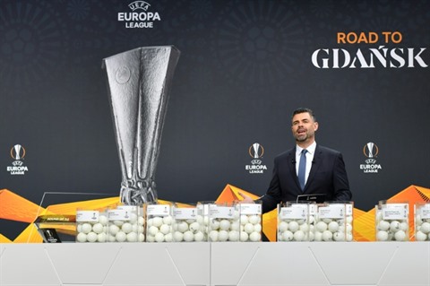 | Photo remise par l'UEFA du tirage au sort des 16es de finale de la Ligue Europa le 14 décembre au siège de l'institution à Nyon, en Suisse. |
