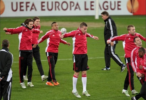 | Les joueurs de l'Ajax d'Amsterdam lors d'un entraînement à Bruxelles. |