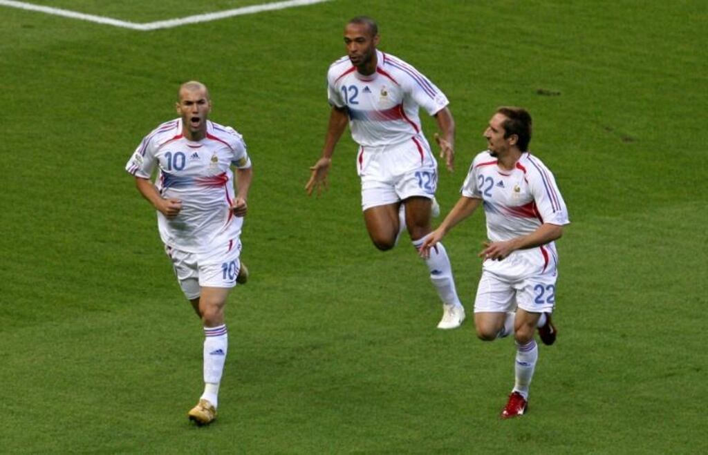| Franck Ribery (droite) avec Zinedine Zidane et Thierry Henry en finale de la Coupe du monde face à l'Italie, le 9 juillet 2006 à Berlin. |