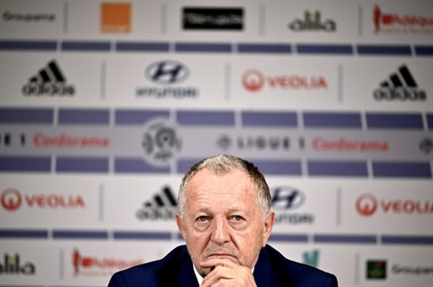 | Le président de l'Olympique lyonnais, Jean-Michel Aulas, lors d'une conférence de presse au Parc OL, le 13 février. |