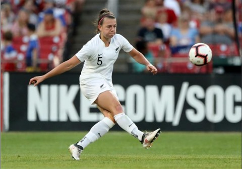 | Meikayla Moore de l'équipe nationale de Nouvelle Zélande, lors d'un match contre les États-Unis, le 16 mai 2019 au Busch Stadium à St Louis, dans le Missouri aux États-Unis. |