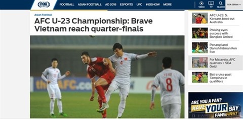 | Un article exalte la performance des fooballeurs U23 vietnamiens sur un journal en ligne étranger. |