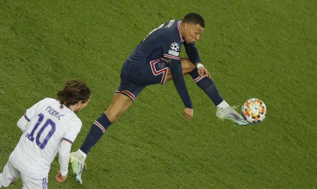 | Kylian Mbappé (droite) face à Luka Modric lor du match entre le PSG et le Real Madrid en huitième de finale aller de la Ligue des champions le 15 février 2022. L'officialisation de l'arrivée de la star française Kylian Mbappé au Real Madrid est attendue au début de la semaine du 3 juin 2024. |