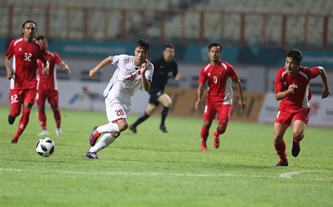 | Le Vietnam a battu le Népal 2-0 aux Jeux d’Asie 2018 (ASIAD 2018) en Indonésie, le 16 août. |