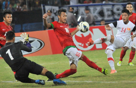 À la première période, les Vietnamiens ont eu beaucoup d'occasions mais ne sont pas parvenus à faire trembler les filets de l'équipe hôte, bien regroupée en défense.