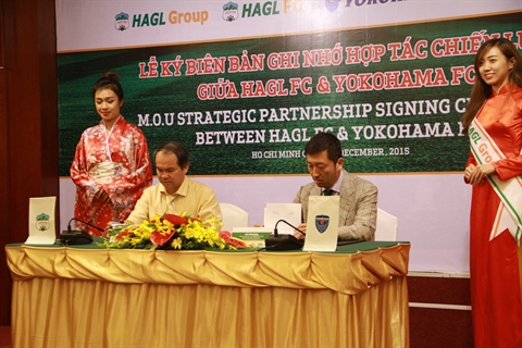 | Signature du mémorandum de partenariat stratégique entre les clubs de football vietnamien HAGL et japonais Yokohama, le 11 décembre à Hô Chi Minh-Ville. |